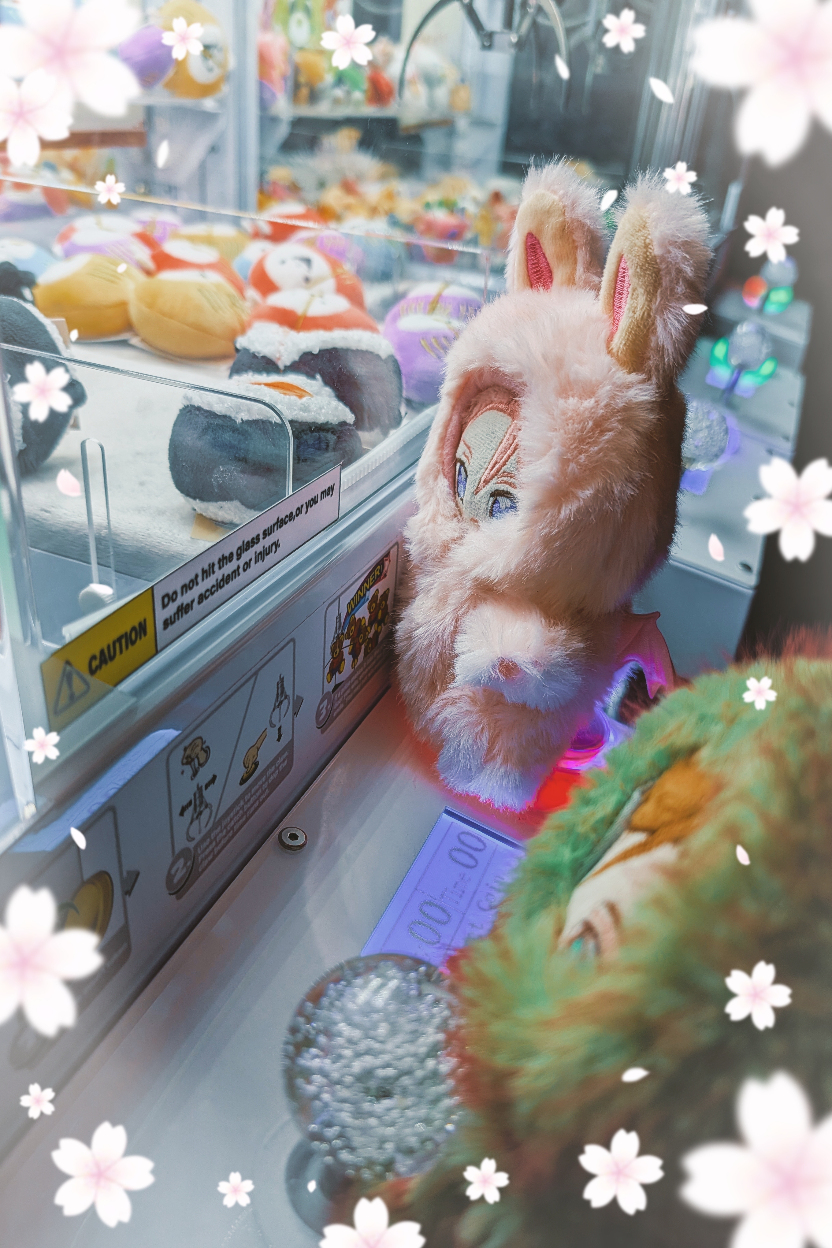 Anyway, I also had to grab a few shots of the nuis in the mini arcade in the theater lobby. I got these kigus off aliexpress because labubu clothes (mostly) fit on the pattythree enstars nuis, and I got them like